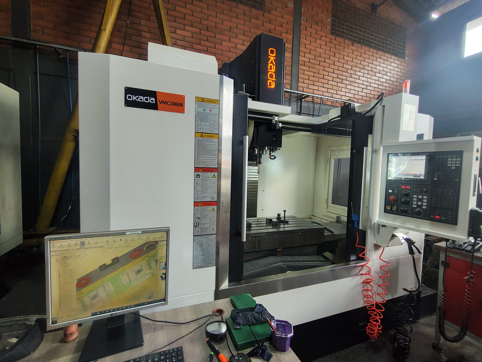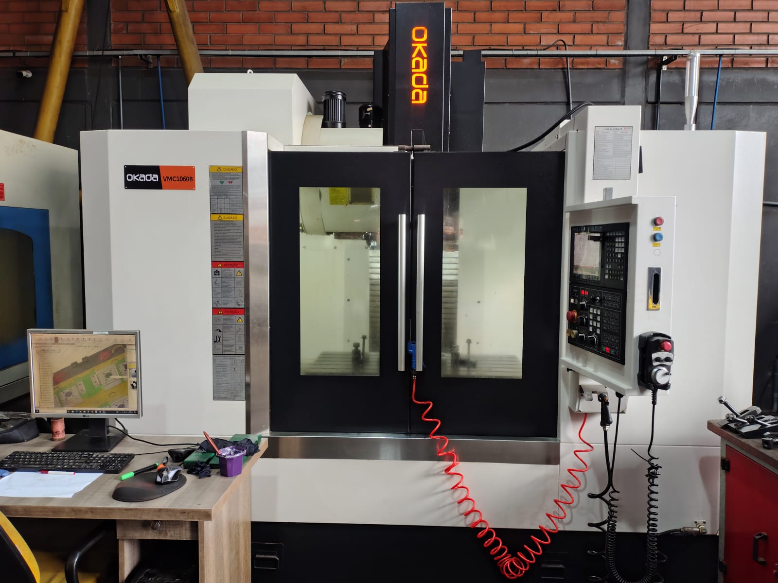 Centro de usinagem CNC vertical, marca Okada, modelo VMC 1060B, ano 2025, seminovo, equipado com comando Mitsubishi M80, alta velocidade de avanço e excelente capacidade de carga, ideal para produção industrial com alta performance e precisão.
