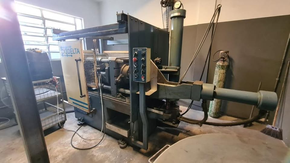 Injetora de Alumínio Delta T 100 Ton, ano 2012, em excelente estado de conservação, ideal para injeção de peças em alumínio sob pressão, com alta produtividade, robustez e precisão. Equipamento pronto para produção industrial.