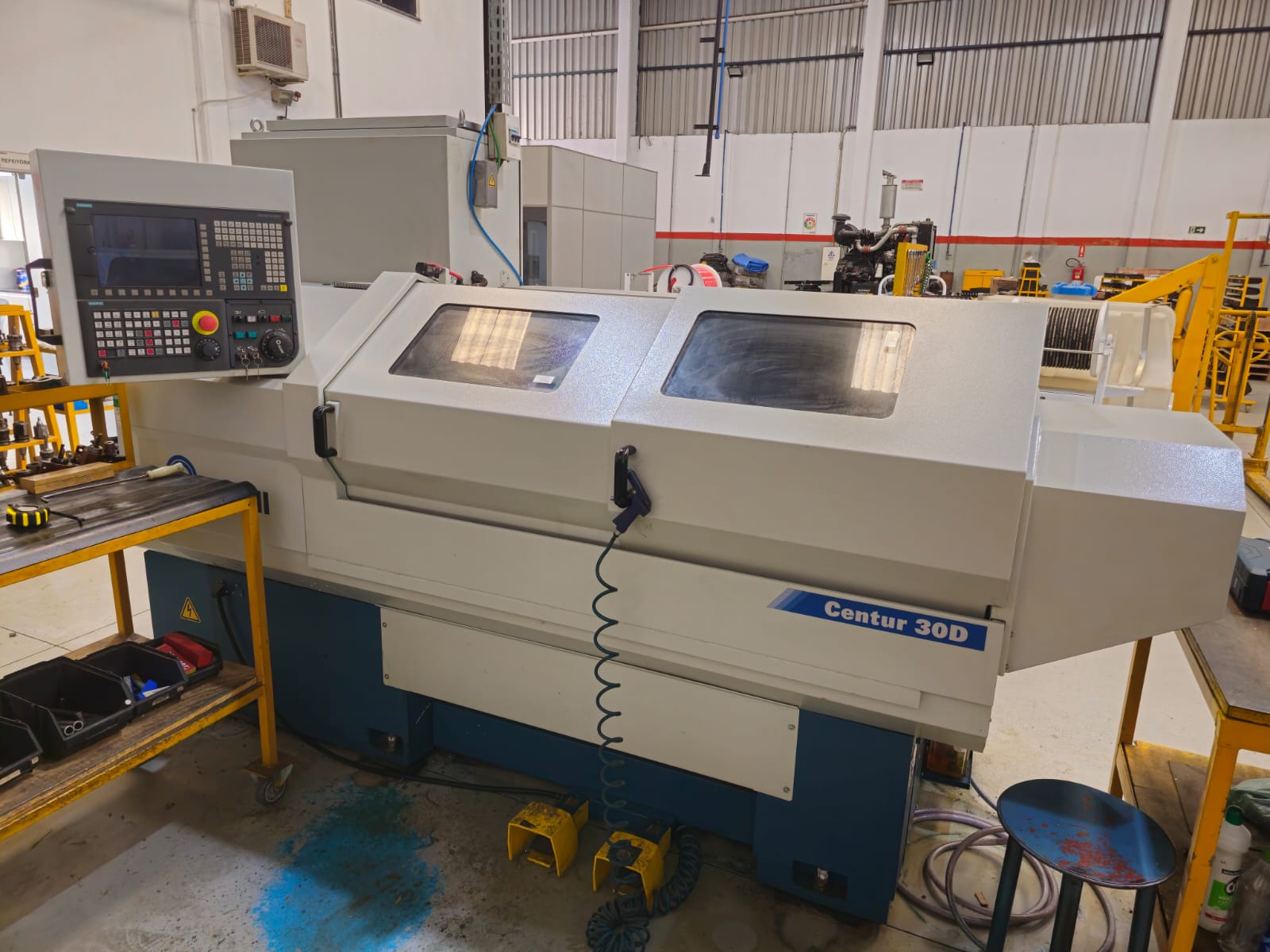 Torno CNC horizontal, marca Romi, modelo Centur 30D, ano 2022, equipado com comando Siemens, com apenas 700 horas de uso, em estado praticamente novo, ideal para produção seriada com alta precisão e confiabilidade.